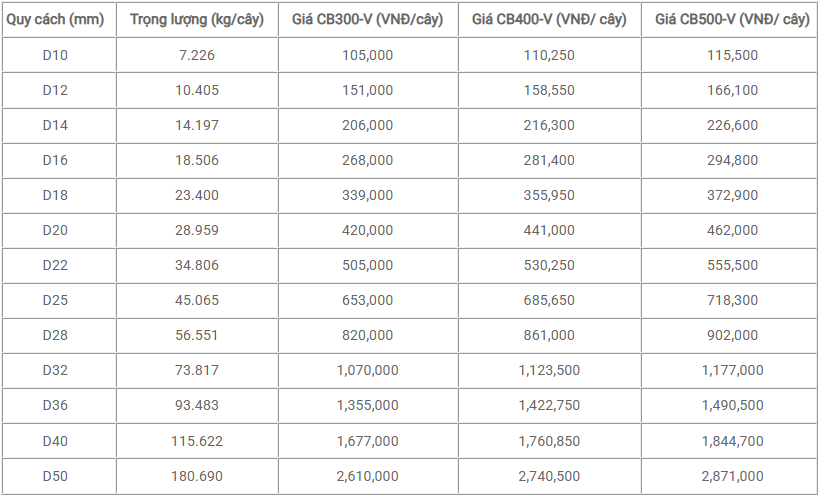 | 14 | V30X5.0-6.6 mỏng | kg | 10,400 | Đa Hội |