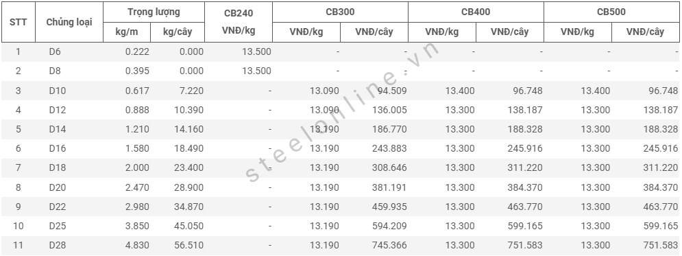 | 9 | Thép ray P38 | 17.900 |