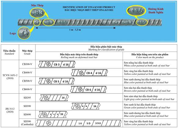 Để nhận biết  đúng là thép gân của Vina Kyoei xin chú ý các điểm sau:
