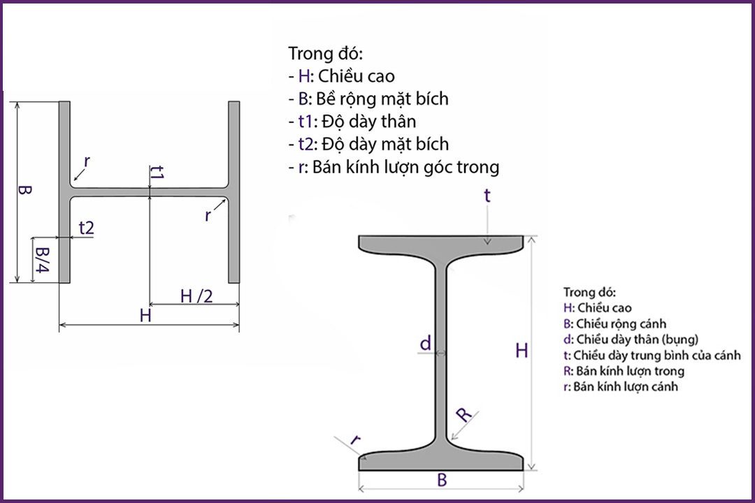 Bảng tra quy cách thép hình H theo Tiêu chuẩn Việt Nam (TCVN)