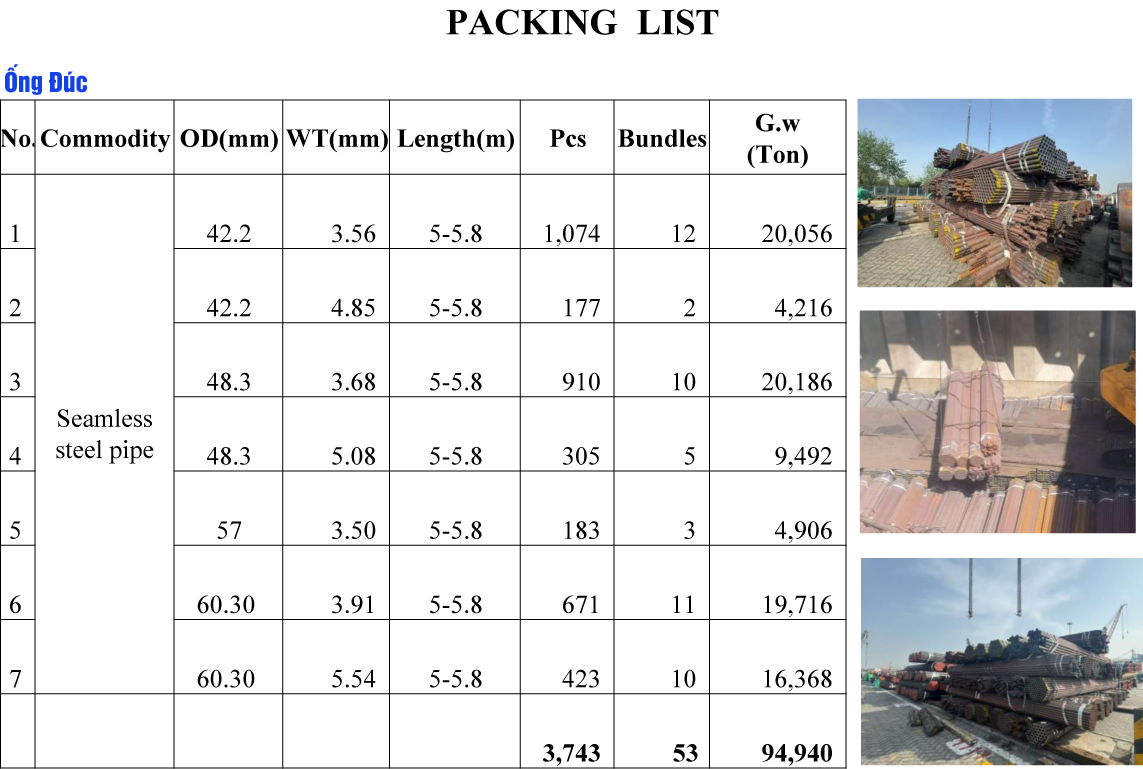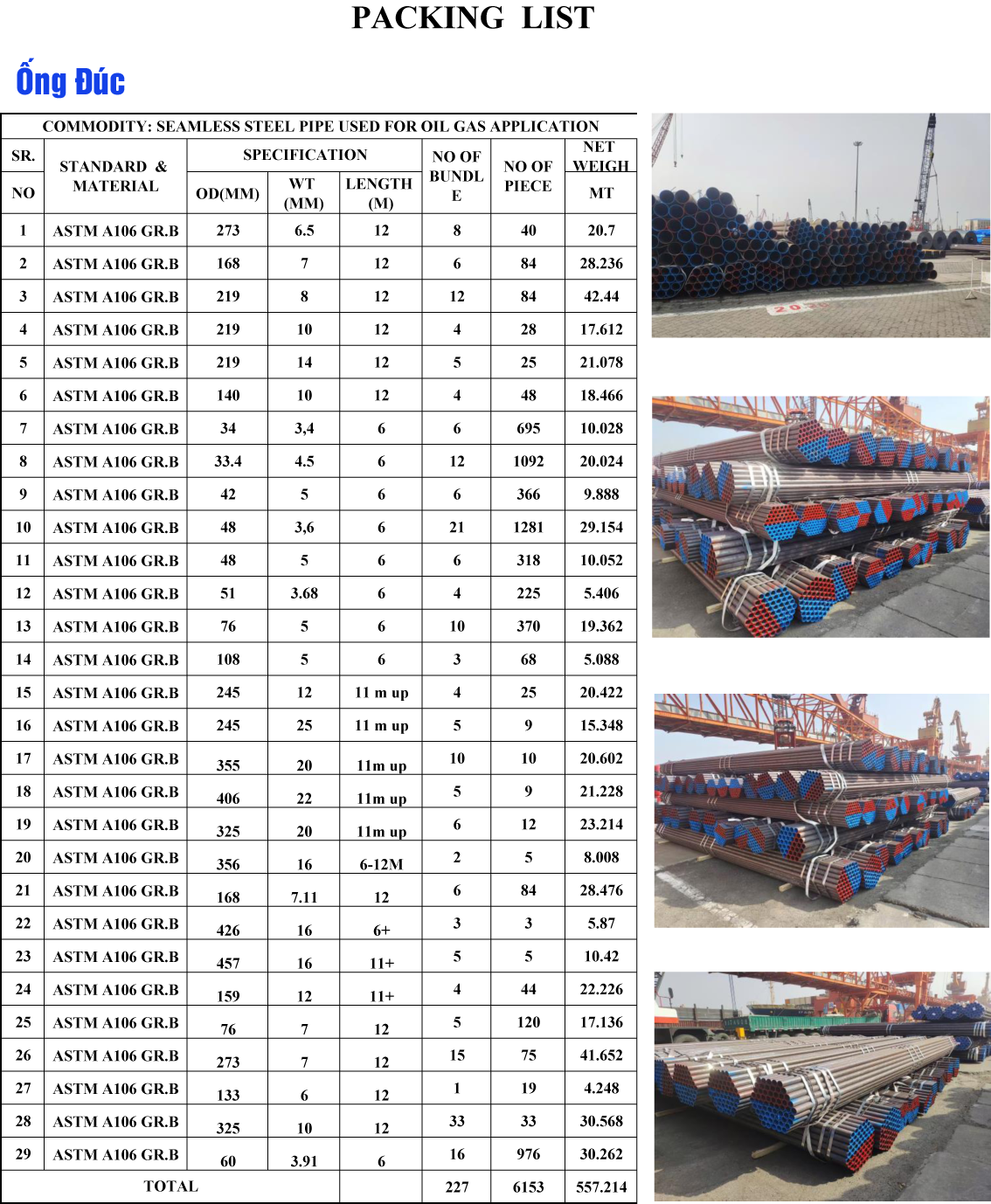 Tiêu chuẩn: ASTM A53, ASTM A106, API 5L, JIS G3444....