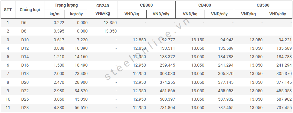 BẢNG GIÁ THÉP VIỆT ĐỨC (VGS)